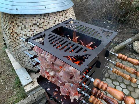 Используя вертикальный мангал, вы сможете готовить шашлык, который будет вкуснее и полезнее. Благодаря особенностям вертикальной конструкции, жир не стекает на горячие угли.